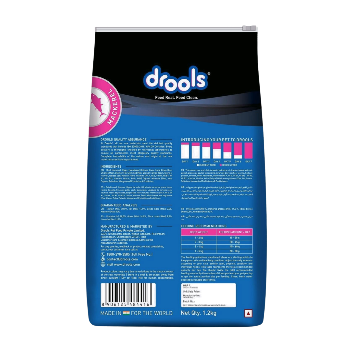 Introducing Drools Cat Dry Food Mackerel 1.2kg, a specially formulated diet designed to support your adult cat’s overall vitality and health. Enriched with high-quality mackerel, this balanced recipe provides essential nutrients that promote a shiny coat, strong muscles, and optimal digestion. Treat your feline friend to a delectable and nutritious meal that keeps them energized and thriving! Perfect for everyday feeding, Drools Cat Dry Food ensures your cat enjoys every bite while benefiting from a well-rounded diet. Elevate your pet’s mealtime experience with the irresistible flavors of mackerel today!