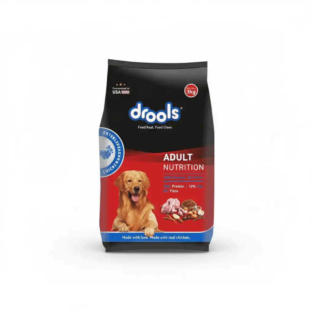 Drools Chicken and Veg Adult 3Kg from Drools. High-quality, safe and tasty pet product. Available at Mirror Pets Bahrain with fast delivery.