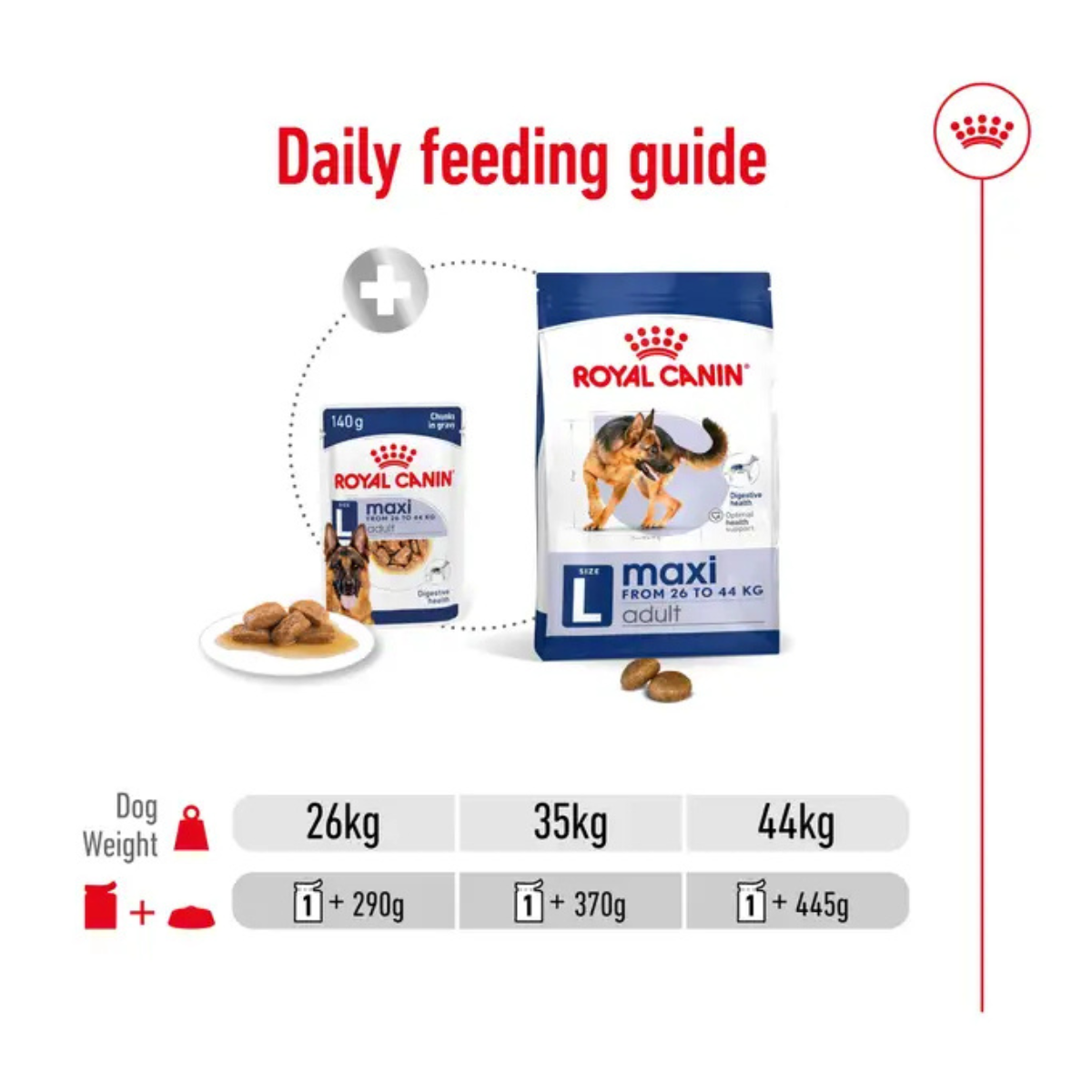 Introducing Size Health Nutrition Maxi Adult Wet Food Pouches, a nutritious and delicious option for your beloved canine companion. Each 140g pouch is carefully formulated to meet the dietary needs of maxi-sized dogs, ensuring optimal health and vitality. Packed with high-quality ingredients, this wet food offers a savory taste while supporting healthy digestion and a shiny coat. Perfectly portioned for convenience, it’s an ideal choice for pet owners looking for the best offers in premium dog food. Treat your furry friend to a satisfying meal that they will love!